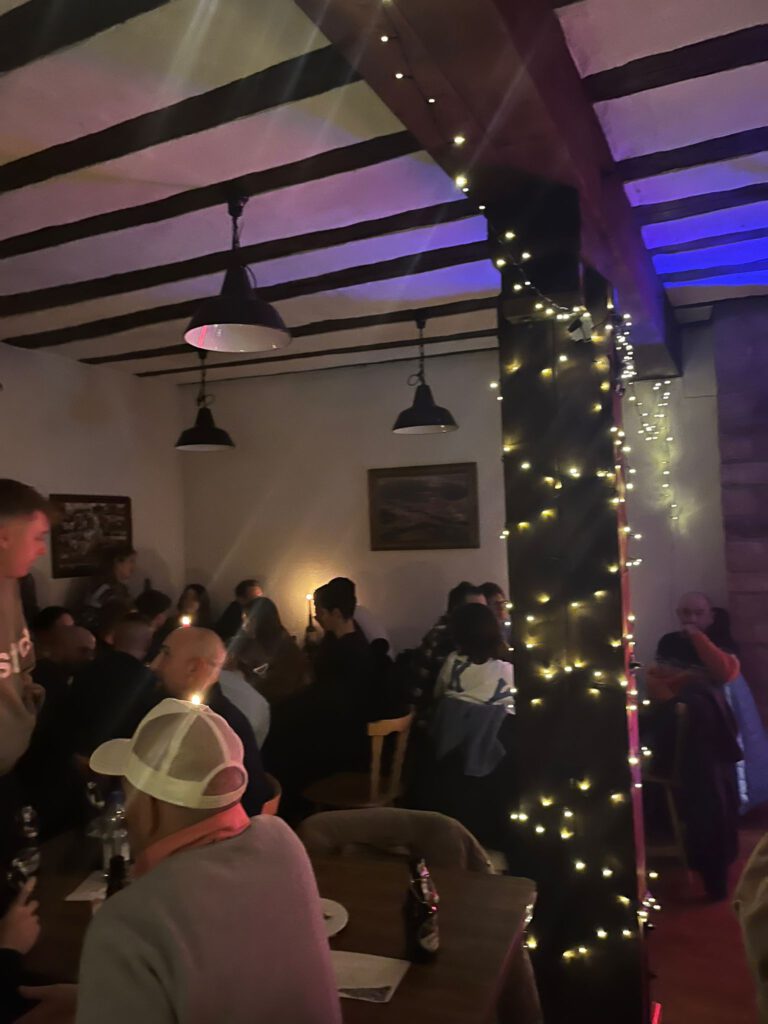 Die Stimmung war durchweg friedlich, offen und gemeinschaftlich geprägt. Für die musikalische Begleitung sorgte akustische Livemusik von Musikerinnen und Musikern aus dem Ort, die maßgeblich zur angenehmen Atmosphäre beitrug. Bei Getränken und guter Musik entwickelte sich ein lebendiger Austausch unter den Gästen, der den Kneipenabend zu einer gelungenen Veranstaltung machte.